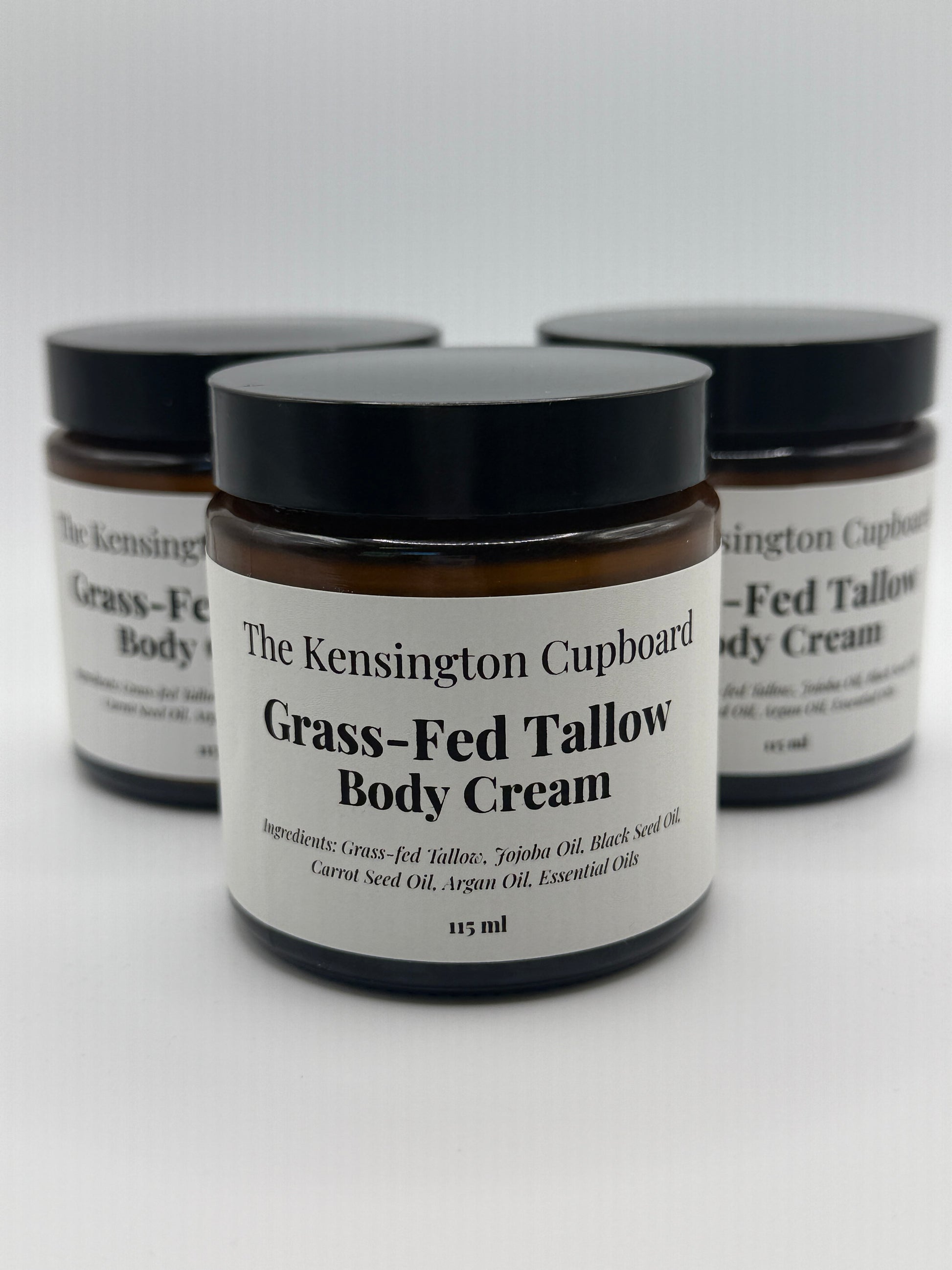 Nourish your skin with the richness of nature. Our Grass-Fed Tallow Body Cream is a luxurious, deeply moisturizing balm made from Grass-Fed Beef Tallow, blended with a curated selection of nutrient-rich oils. Tallow, known for its bioavailability and similarity to our skin’s natural oils, absorbs beautifully, leaving your skin soft, hydrated, and glowing.